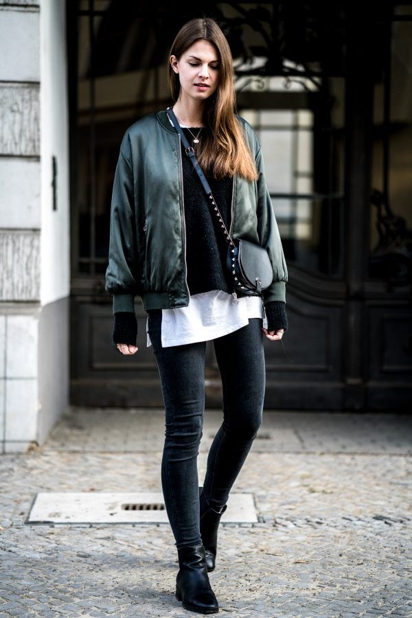 Complétez le blouson aviateur à la mode avec un jean ou une robe, ainsi que des baskets ou conversez, et le look à la mode pour une promenade ou une réunion entre amis est prêt.