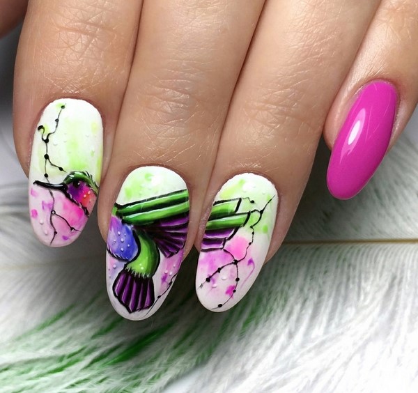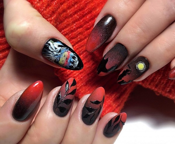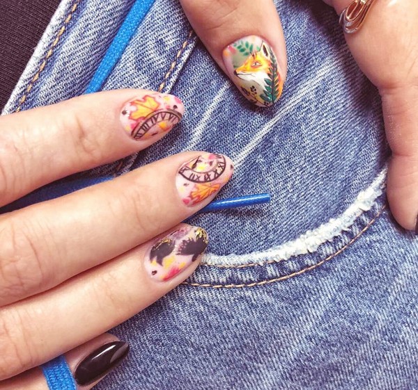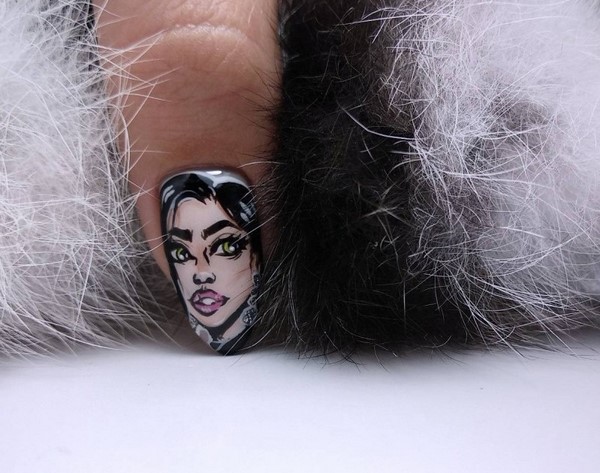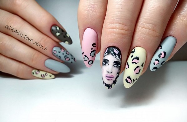 La tendance parmi les impressions sur les ongles à la mode sera un motif prédateur, des motifs abstraits, des portraits et des visages de filles, un dessin floral et des dessins floraux, l’animalisme et la géométrie.