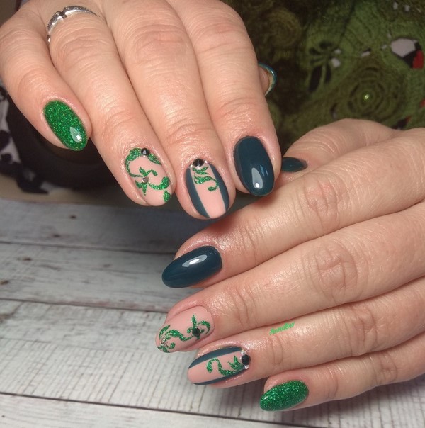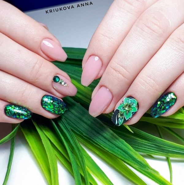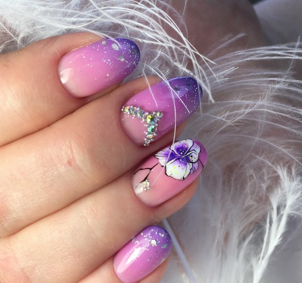 Ongles à la mode avec nail art brillant