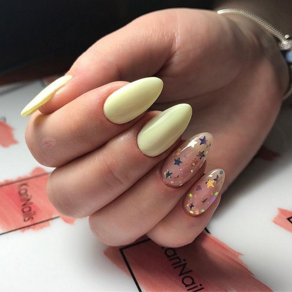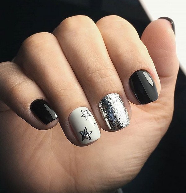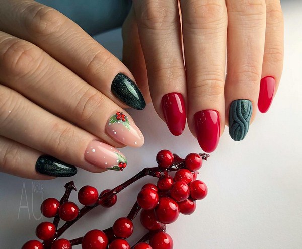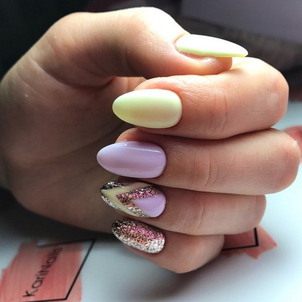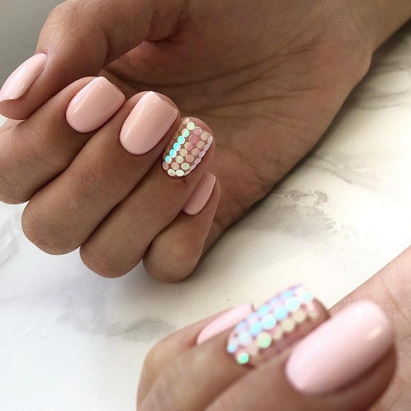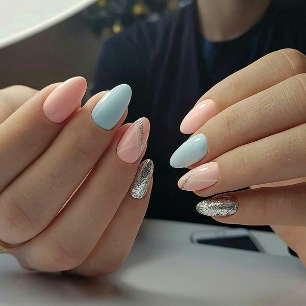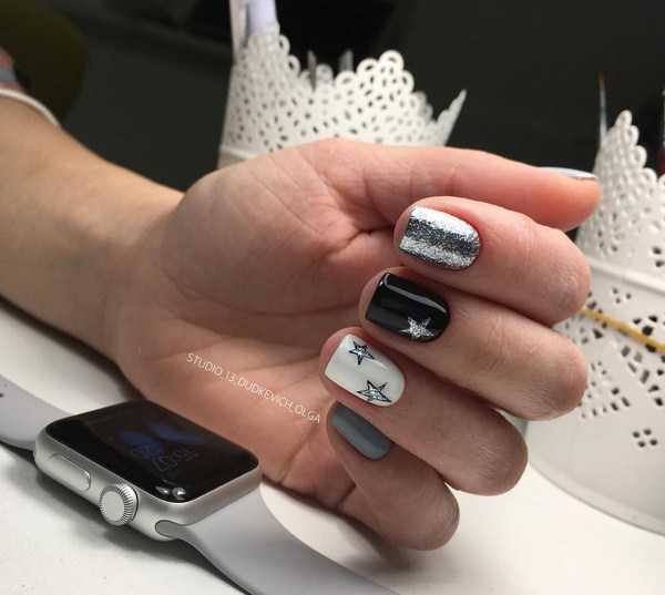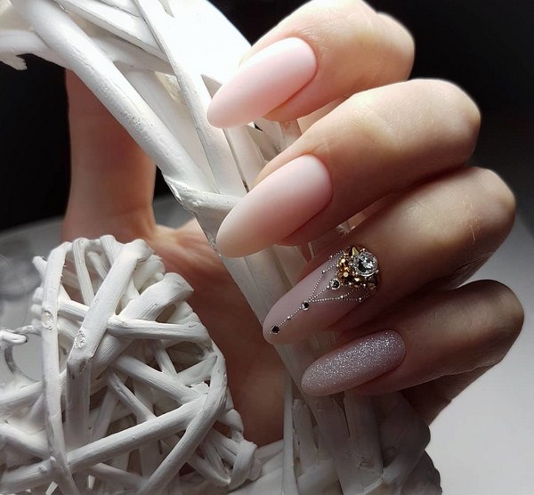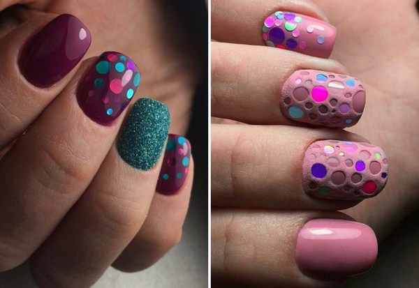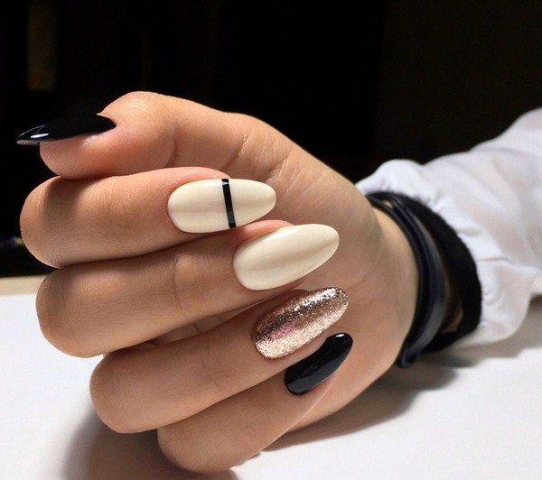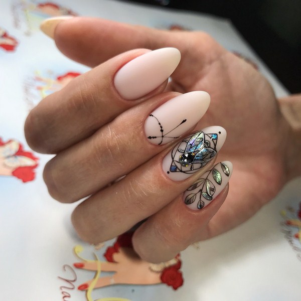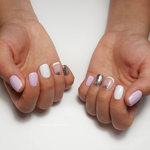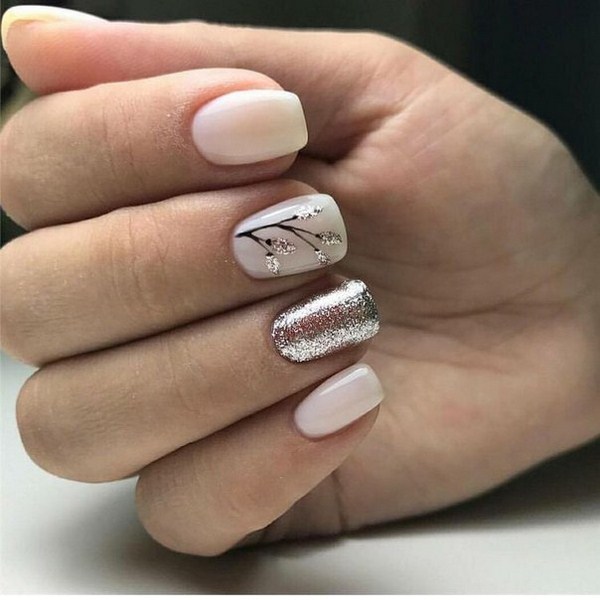 Il est important de réaliser les nouveautés à la mode de la manucure dans la bonne teinte: regardez de beaux tons profonds ou, au contraire, des palettes légères et tendres. Et en outre, le meilleur choix serait l'or ou l'argent sous forme de paillettes et d'étincelles, de feuilles sous ses diverses formes.