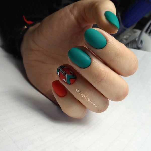 Ne pas oublier le contraste du vernis mat et brillant, qui est tellement spectaculaire dans de nombreuses nouvelles manucures 2025-2026.
