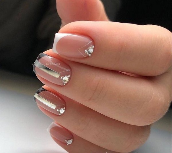 Non sans créer des idées d'ongles fraîches sans cailloux ni cristaux.Les créateurs utilisent des tailles de strass de différentes tonalités et tailles, ce qui vous permet de compléter au mieux les motifs sur les ongles et de créer des formes et des motifs à partir de strass.