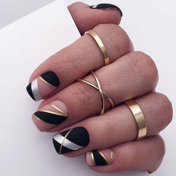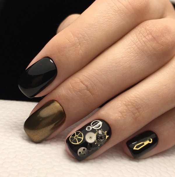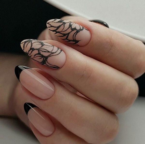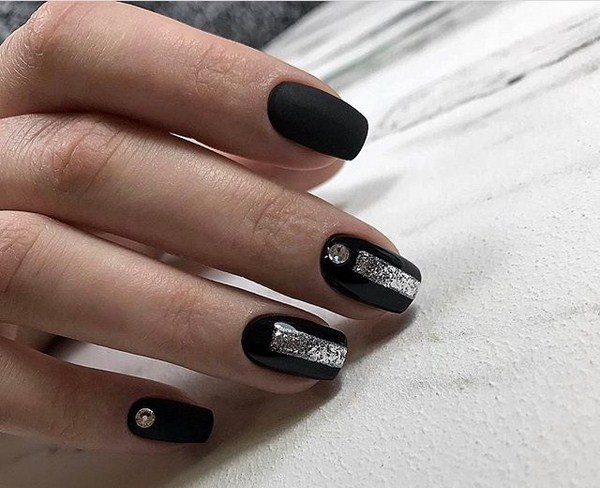 Le design des ongles français aidera à rendre la couleur noire du vernis irrésistible, des éléments complémentaires sous forme de bandes, de strass, de feuilles, de paillettes et de motifs.