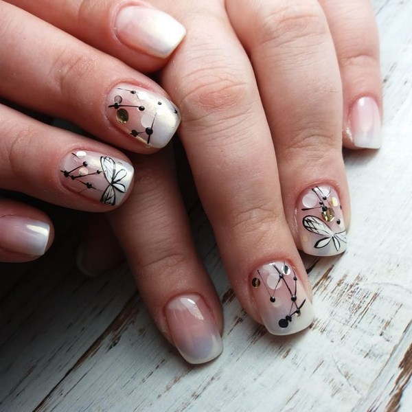 Vous pouvez voir les nouveautés à la mode de la manucure 2025-2026 avec des techniques qui vous étaient familières - une veste, une manucure de la lune, un dégradé, des solutions intéressantes «fleurs aériennes», «espace négatif», «verre brisé» et «œil de chat».