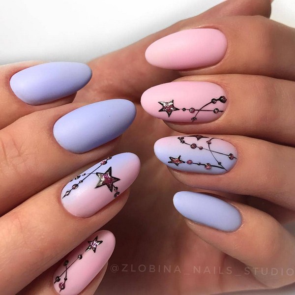 Des images incroyables d'impressions sophistiquées et légères sont réalisées par des maîtres des ongles en combinaison avec des teintes pastel et nobles de vernis.