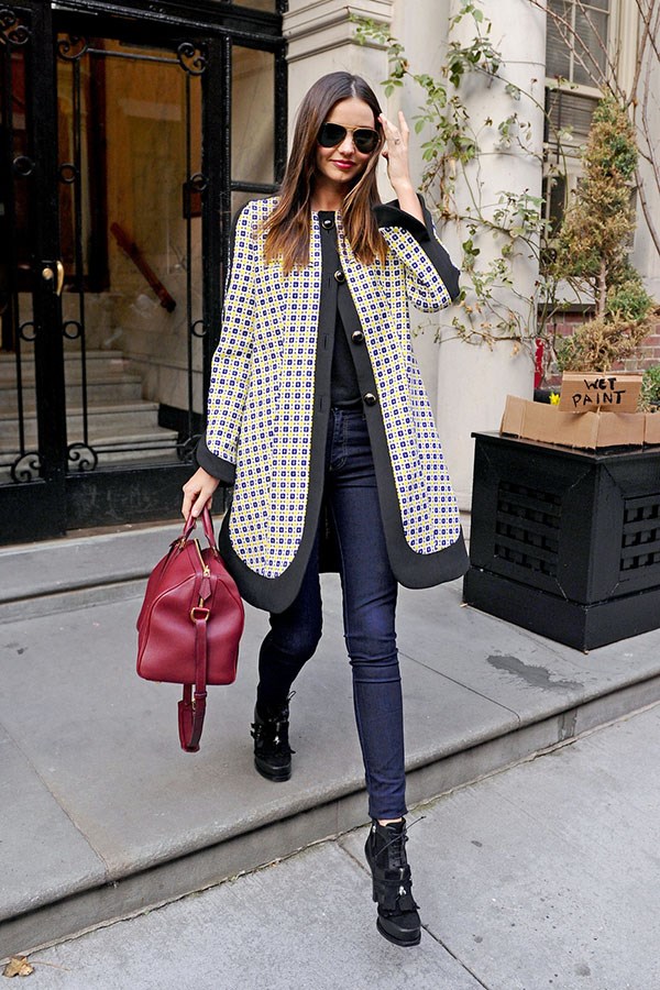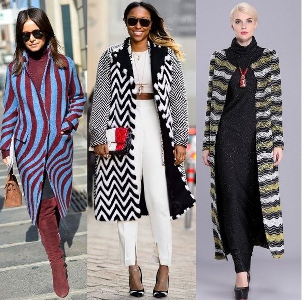 Les manteaux originaux avec impressions sont incroyablement populaires en raison de leur capacité à créer des images lumineuses et accrocheuses. Manteau très populaire dans une cage - la tendance est une cage de Vichy et d'autres variétés tout aussi populaires de cet imprimé dans des couleurs classiques pour la période froide.