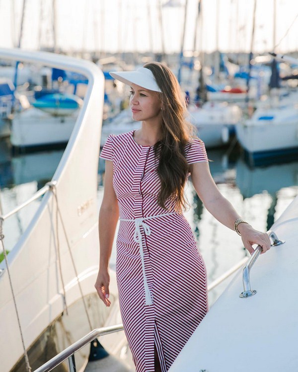 Les filles jeunes et actives peuvent se permettre une tenue mini rayée pour l'été. Les représentants sont un peu plus âgés - robes d'été avec des rayures jusqu'au genou ou midi à la mode.