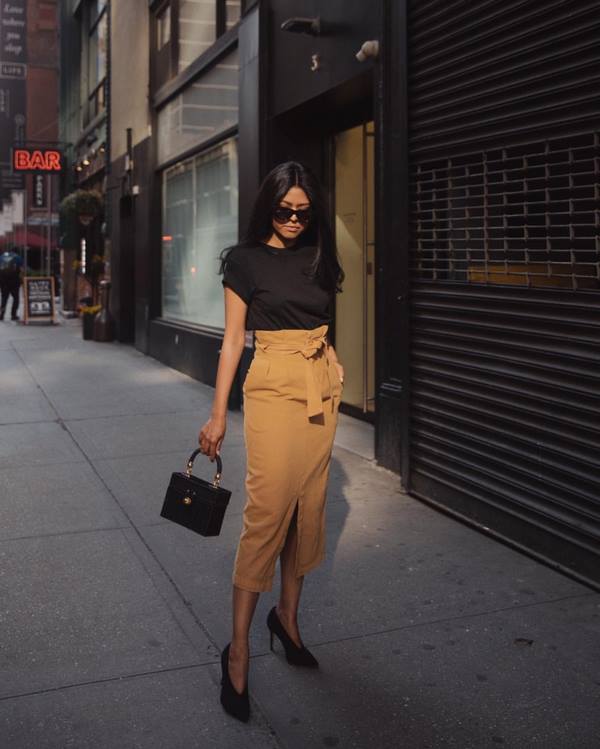 Les femmes d'affaires et les représentants des bureaux accorderont certainement une attention particulière aux images pour le travail ou à ce que l'on appelle les nœuds commerciaux de tous les jours. Le code vestimentaire strict suppose la présence d'un tailleur pantalon, d'un pantalon classique et d'une jupe mi-longue de style crayon, complétée par une chemise ou un chemisier sans décolleté profond pour un look à la mode au quotidien. Dans certains bureaux, il est permis de porter des jeans et des baskets avec un tailleur pantalon comme tenue de bureau au quotidien. Excellente option pour tous les jours à la mode. image de bureau la robe sera juste en dessous du genou ou une jupe crayon et un t-shirt blanc.