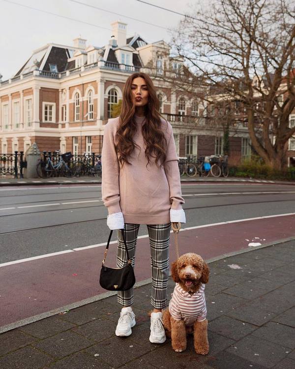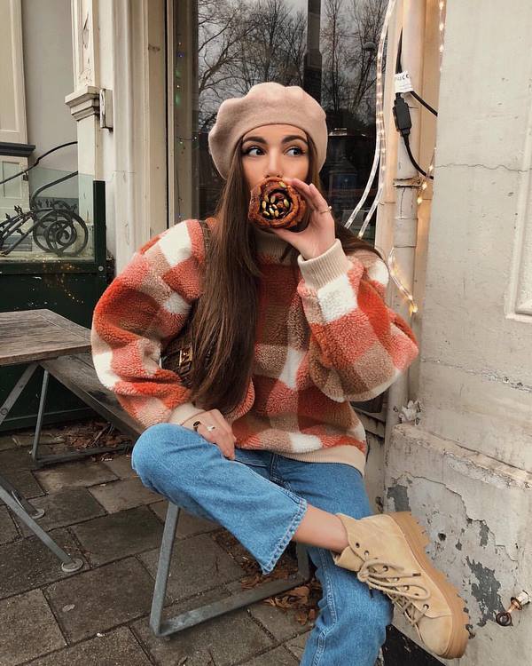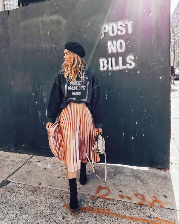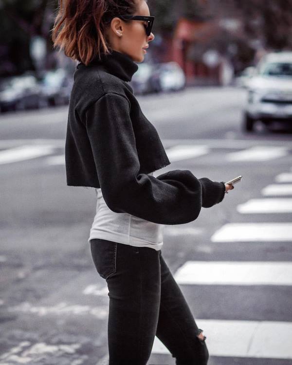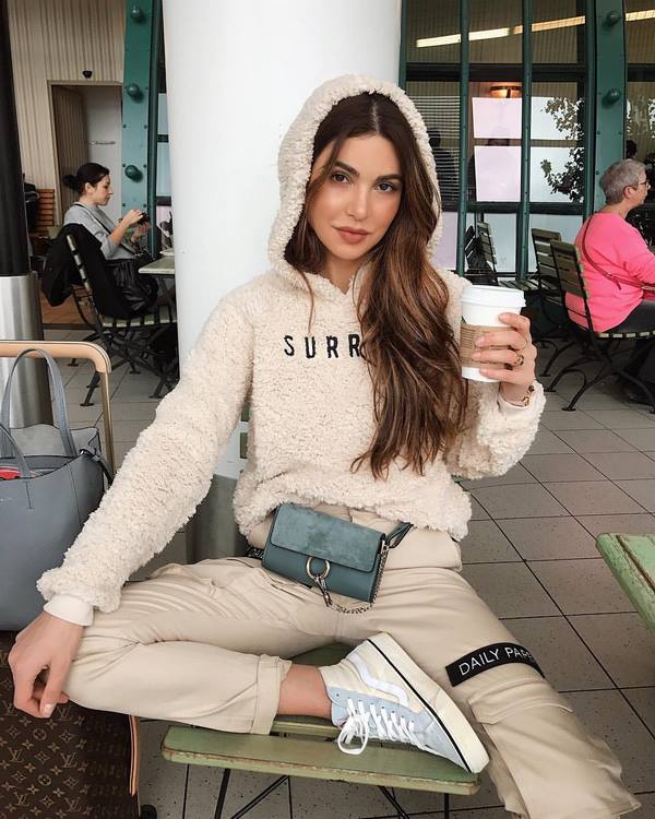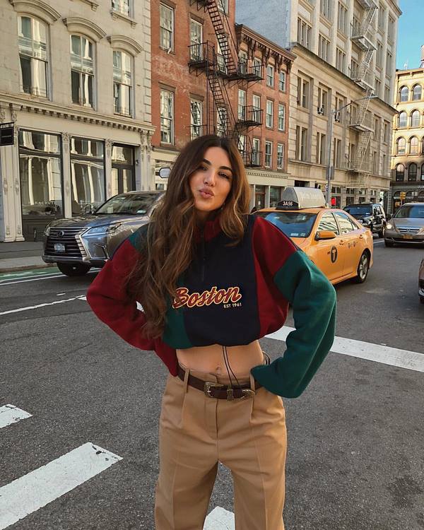 Des pulls molletonnés à la mode sont proposés en tant qu'élément de garde-robe indépendant, et les blogueurs avec des pulls molletonnés présentent des images très cool, qui font partie d'un costume tendance à la mode.