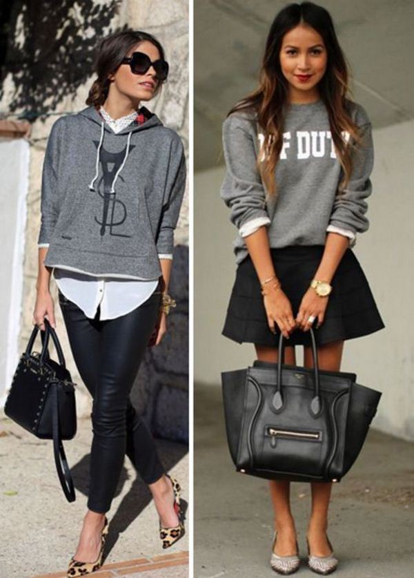 Les sweatshirts glamour et élégants pour femmes peuvent également être décorés de strass et d'ornements sur le tableau, tout en créant de véritables œuvres d'art. Une combinaison inhabituelle de styles et de textures attire l'attention, et votre image avec un sweat à capuche dans ce style suscitera certainement l'intérêt.
