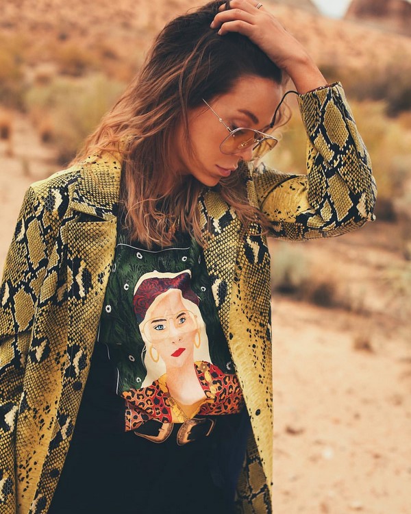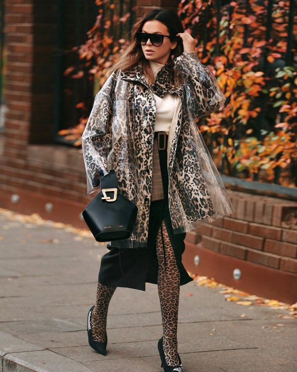 Les imperméables à la mode se distinguent non seulement par les couleurs, mais aussi par les imprimés, parmi lesquels, dans les premières positions, il y a un imprimé animal, en particulier un imprimé prédateur. Si vous voulez que votre image soit rappelée, choisissez une cape à la mode léopard, sous un zèbre ou un python. L'attention et les regards admiratifs avec un manteau si intriguant sont garantis.