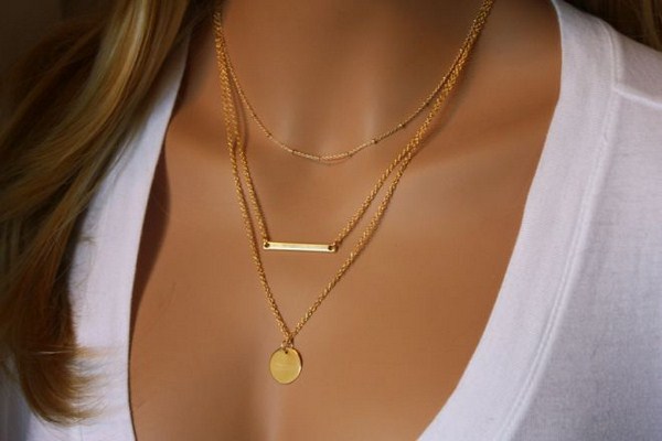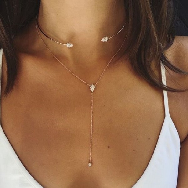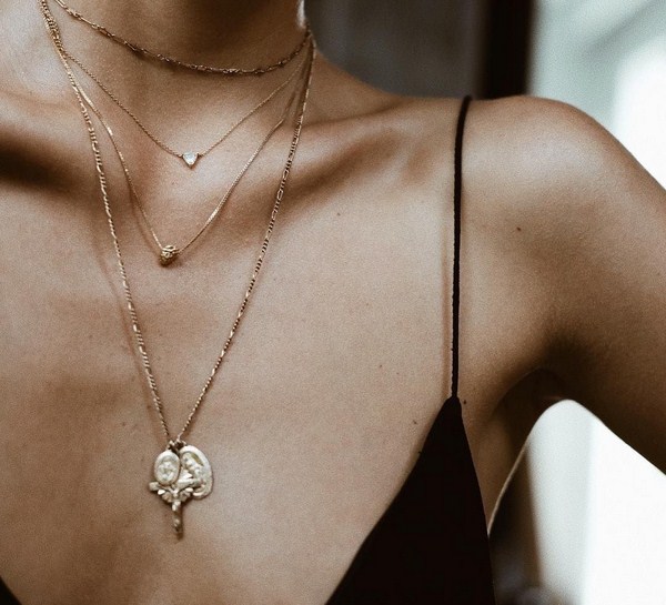 Les bijoux à la mode sur le cou sous forme de chaînes de plus en plus petites et de pendentifs 2025-2026 doivent être portés immédiatement et à plusieurs, comme indiqué sur la photo. Les ensembles de chaînes sont un must et une tendance pour les bijoux de mode 2025-2026.