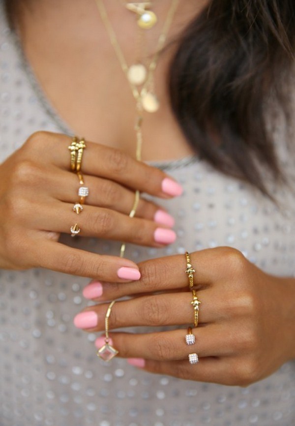 Comme nous l'avons déjà mentionné, il ne peut y avoir beaucoup de bagues cette saison. Par conséquent, choisissez beaucoup de bagues fines et gracieuses sur plusieurs doigts à la fois. Les anneaux sur les phalanges sont également beaux, élégants et sophistiqués.