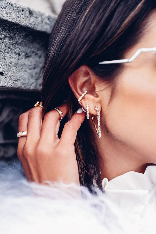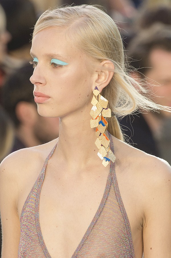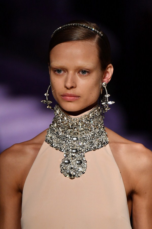 Une attention particulière devrait être accordée aux boucles d'oreilles à la mode, qui devraient être grandes et visibles. Les bijoux à la mode sous forme de boucles d'oreilles doivent absolument être choisis avec beaucoup de strass et descendre presque jusqu'aux épaules. Vous pouvez trouver les meilleurs et les plus en vogue boucles d'oreilles avec des pierres chez Saint Laurent, Isabel Marant, Oscar De La Renta, Marchesa.