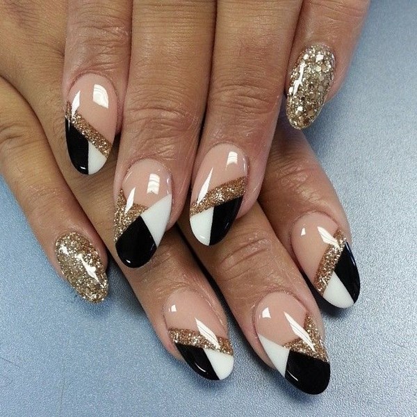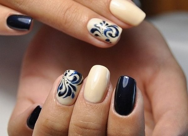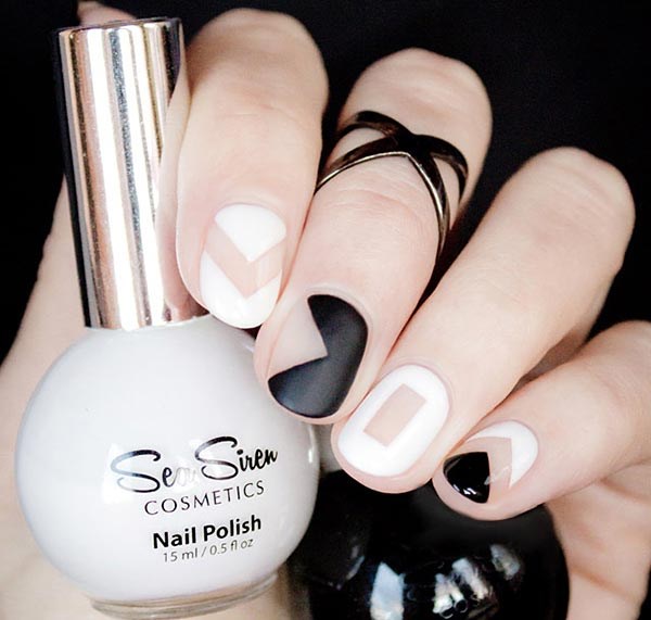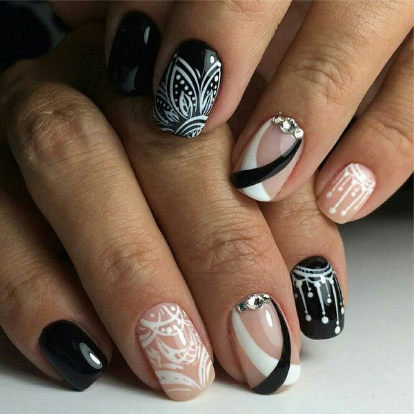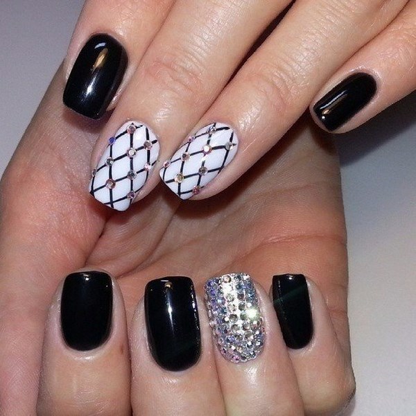 Le plus populaire est la manucure noire et le vernis blanc, ce qui, à juste titre, peut être considéré comme un classique. Ce type de manucure noire au design concis conviendra au bureau et aura l’air élégant dans toute image professionnelle.