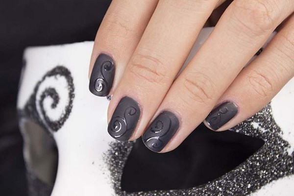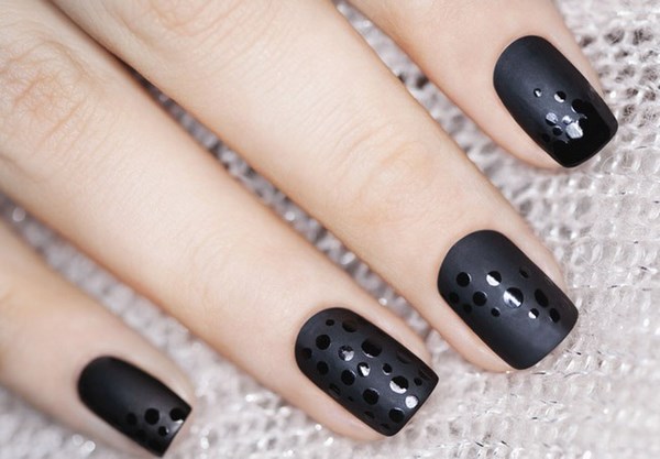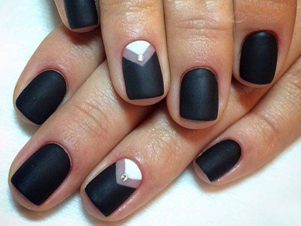 Une des caractéristiques de la manucure noire mate est la nécessité de la compléter avec divers détails et décors, ce qui vous permet de mieux démontrer l'originalité de la finition mate.