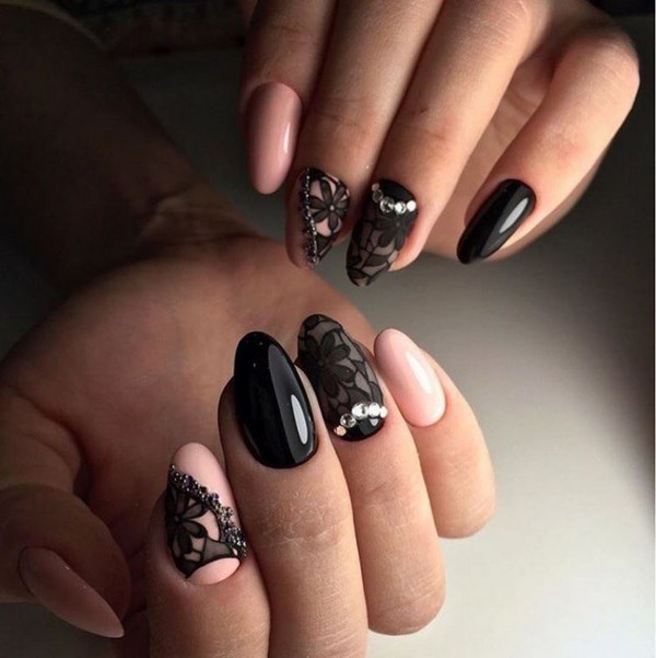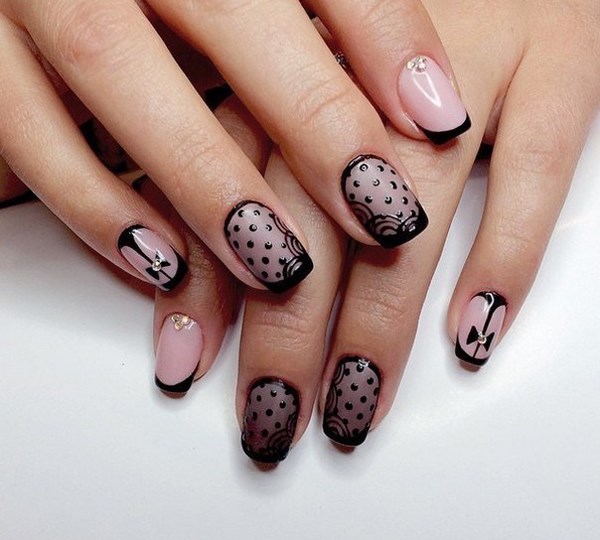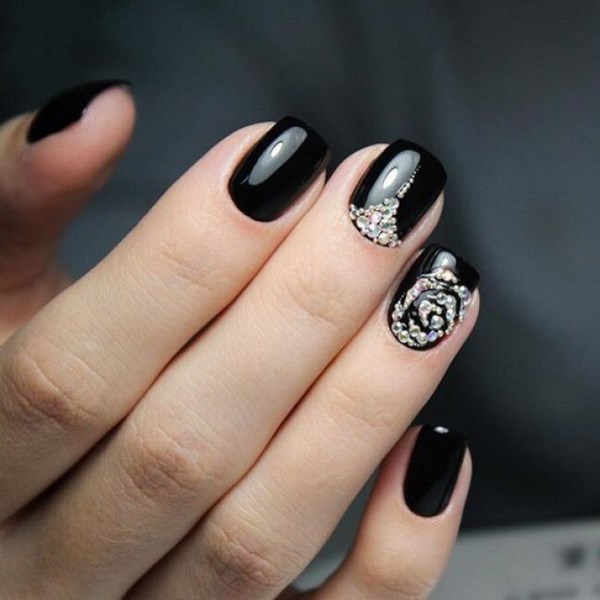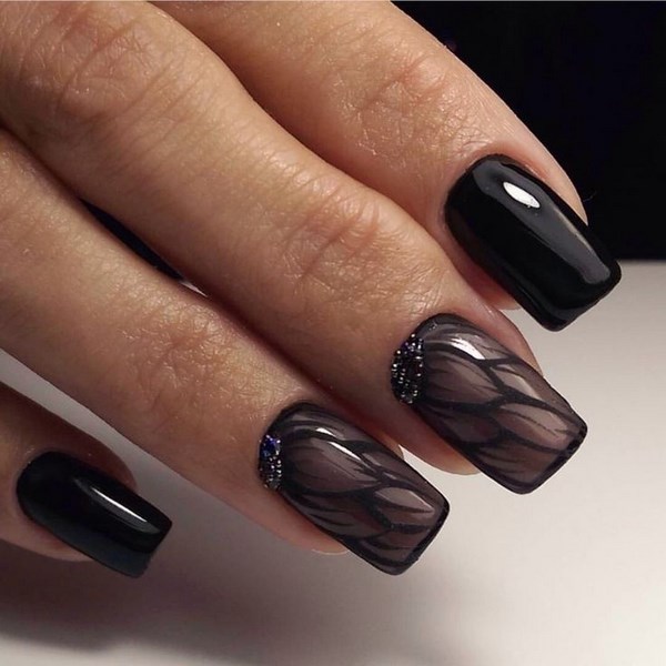 Pour créer une manucure noire à la mode, vous serez aidé par divers dessins et estampes, qui sont très divers et complèteront la manucure noire pour tous les styles de vêtements et de boucles.