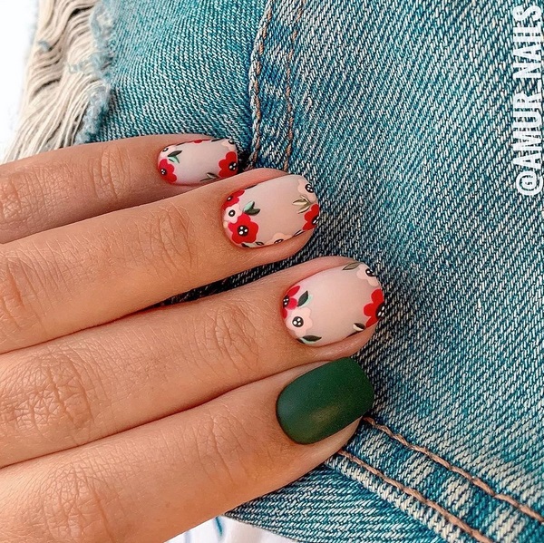 Manucure combinée avec des fleurs