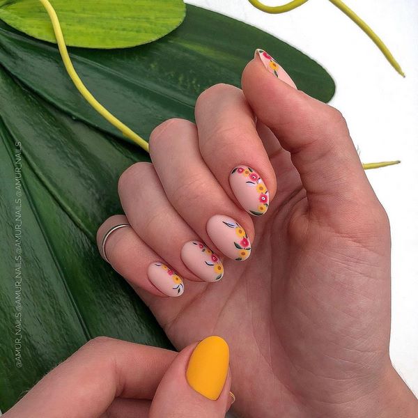 La conception floristique et florale des ongles 2025-2026 se distinguera par un style spécial de conception florale, qui deviendra plus élégant, sophistiqué et délicat cette saison. Très petites et minuscules fleurs sur les ongles dans un design mat se révélera être très populaire.