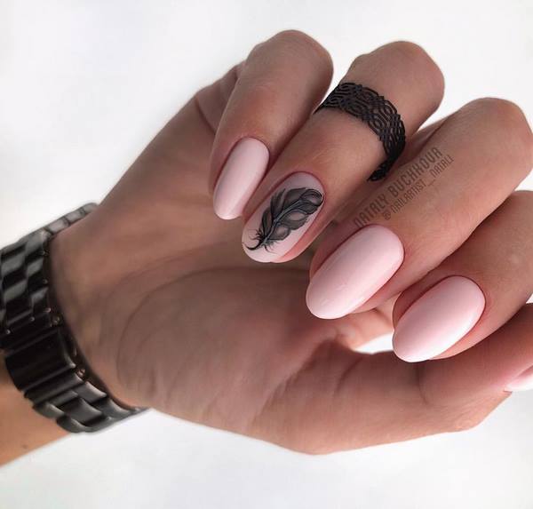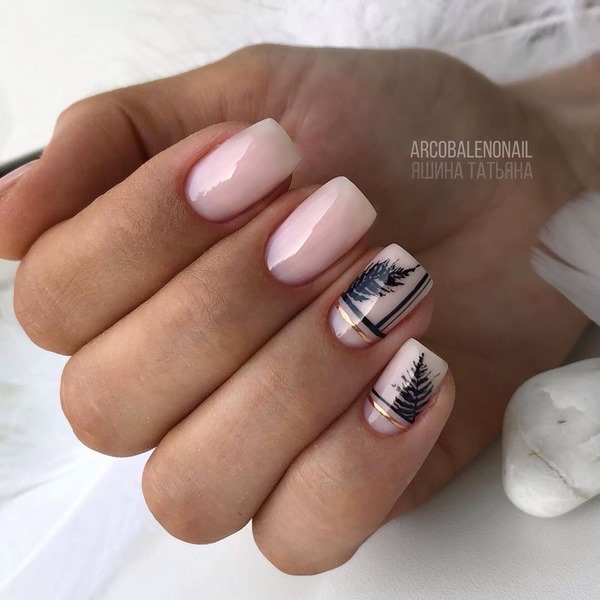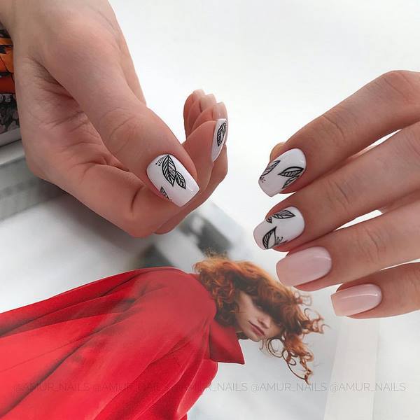Le beau design des ongles moyens dans le style du minimalisme est caractérisé par une extrême retenue et raffinement, qui sont très importants dans le style professionnel du design des ongles, ainsi que dans toute manucure quotidienne sur les ongles moyens. La tendance de la saison sera un stylo à la mode sur un ongle, des brindilles sophistiquées, des fougères, des rayures ou des graphiques dans la conception des ongles moyens «minimalisme».