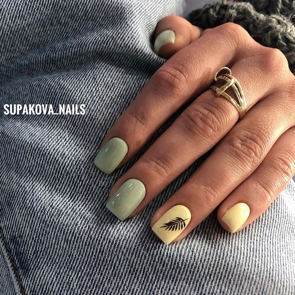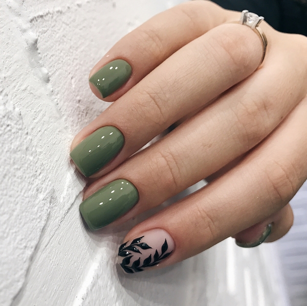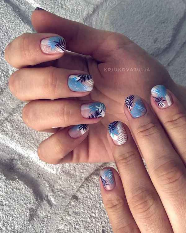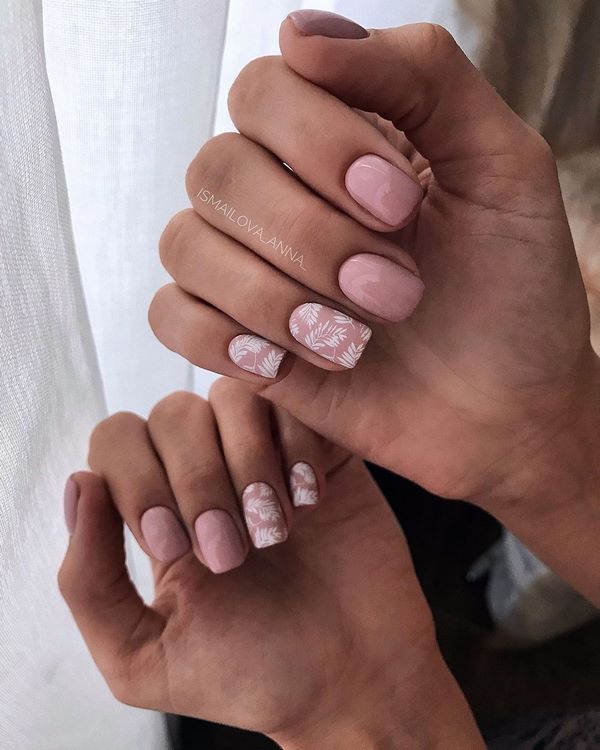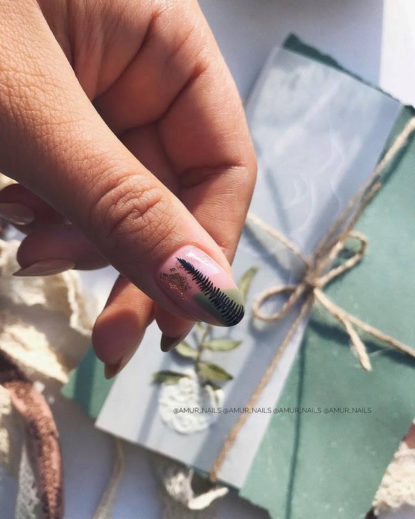 Manucure sur des ongles moyens avec une feuille