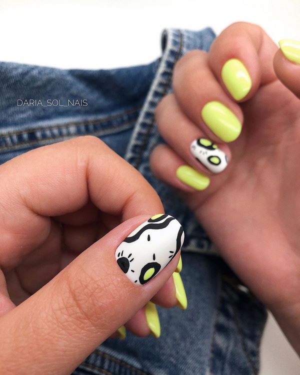 La manucure abstraite à la mode sur les ongles moyens est très impressionnante et audacieuse, vous permettant de créer un nouvel art de saison saisonnier pour l’automne ou l’été, et une manucure fraîche sur les ongles moyens tous les jours. Manucure abstraite à la mode dans la longueur moyenne des ongles sera très populaire dans la saison de la mode à venir.