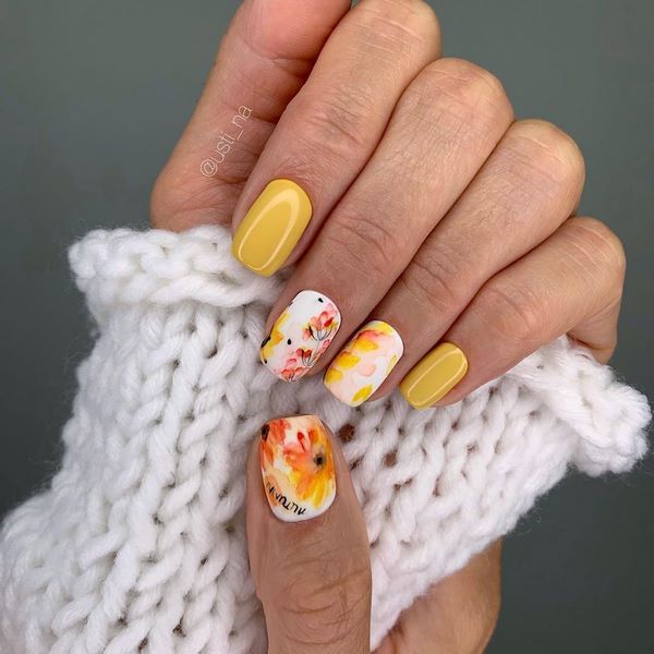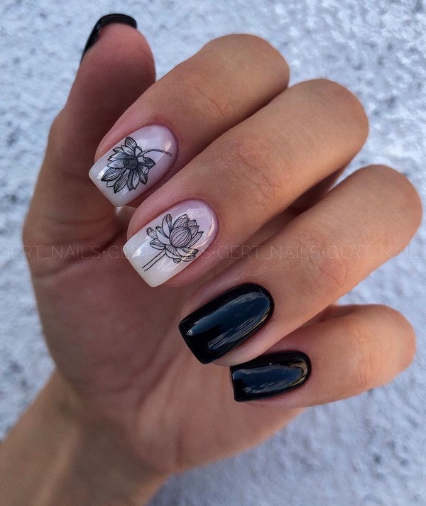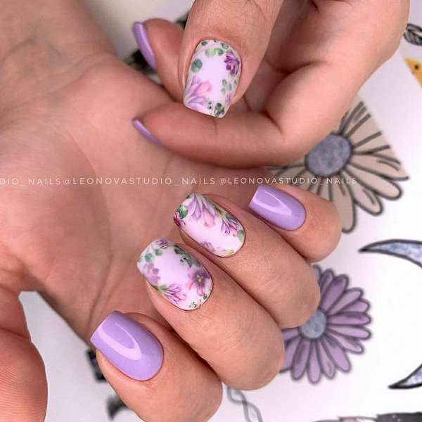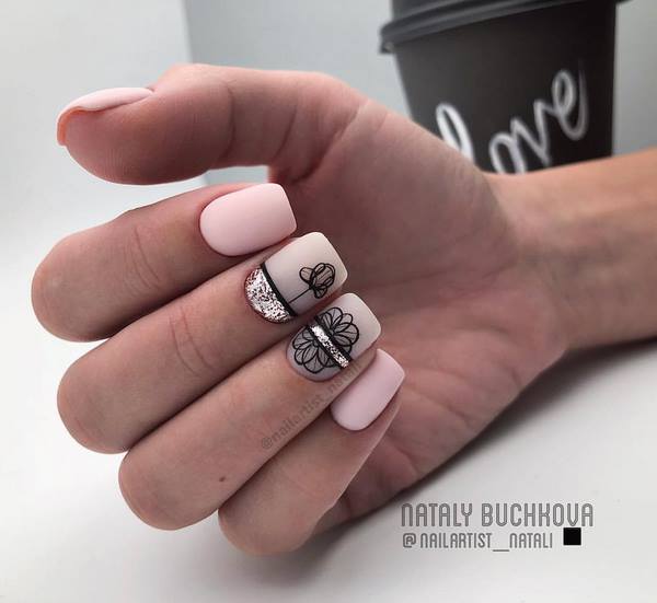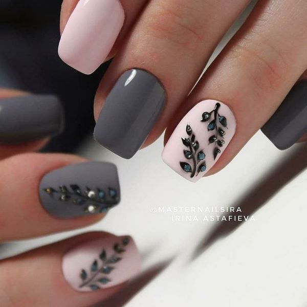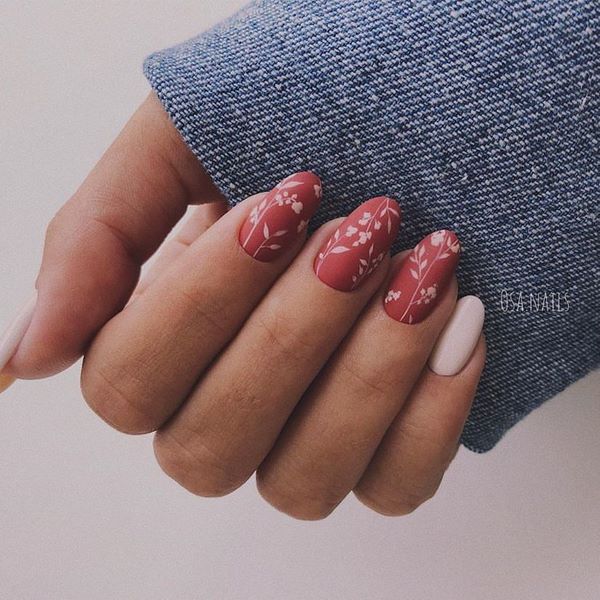 Les artisans d'ongles proposent de réaliser le style romantique de manucure dans un dessin à la mode d'ongles moyens présenté par des dessins de branches élégantes et sophistiquées sur les ongles. Vous pouvez également dessiner des fleurs petites et minuscules, qui sont également très pertinentes dans le nouveau design nail art pour la longueur moyenne des ongles pour la saison à venir. La simplicité faite motif de fleurs sera très en demande et la tendance de la fleuristerie dans la conception des ongles moyens pourrait être le style graphique de l’impression.