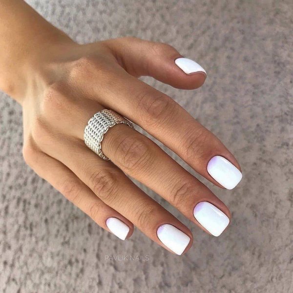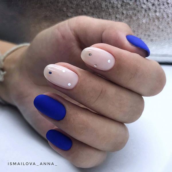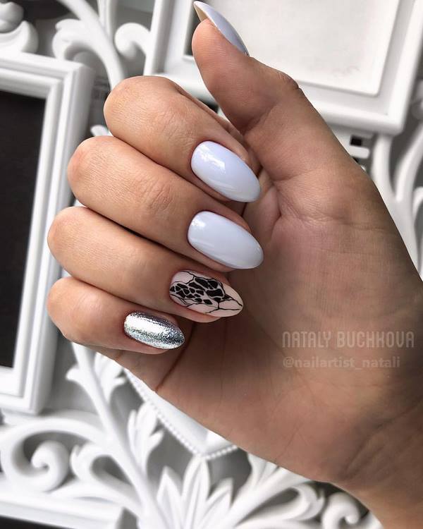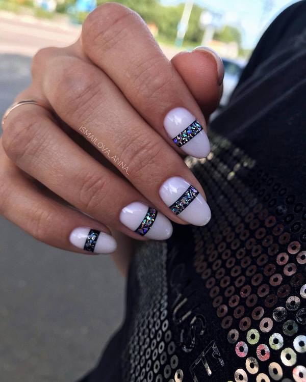 Une longueur moyenne magnifique et presque parfaite des ongles est représentée à la fois par le minimalisme tendance et la peinture créative des ongles. Vous pouvez parfaitement compléter les ongles du milieu avec des cailloux et des cristaux, qui sont tellement chic dans un style de manucure festif à la mode.