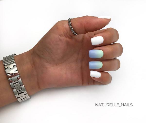Considérant toute la richesse des idées pour la conception à la mode de manucure sur les ongles moyens, il convient de souligner les techniques française et «espace négatif», la conception estampée et la conception de points, la conception en dégradé et «ligne d'araignée», la conception de curseur et la peinture au pinceau sur les ongles moyens.