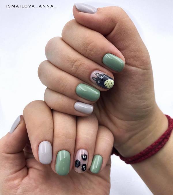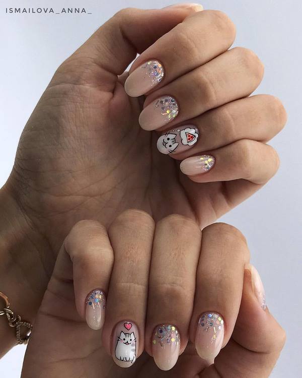 N'abandonnez pas le design attrayant des soucis moyens sous forme d'images les plus mignonnes d'animaux, d'animaux de compagnie ou d'autres croquis amusants. Vous pouvez dessiner à la main de tels dessins magnifiques et amusants sur des ongles de taille moyenne, et utilisez des curseurs prêts à l'emploi mono. Dans les deux cas, vous obtiendrez un dessin unique et mémorable d'art de soucis moyens.