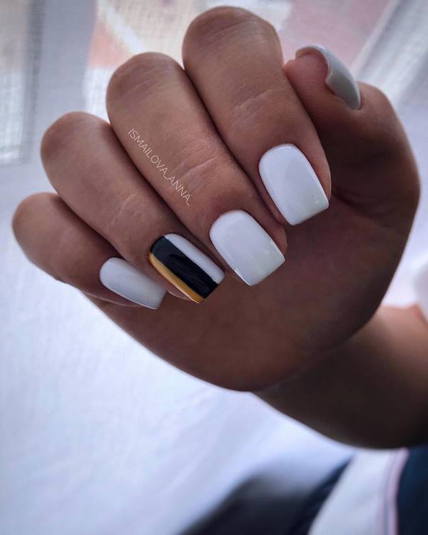 Mais il existe toujours un milieu «doré», comme dans ce cas-ci - il s’agit d’une manucure à la mode pour les ongles moyens, qui combine à la fois fonctionnalité et commodité pour les ongles courts, ainsi que la brillance avec l’expressivité du design à la mode des ongles longs.