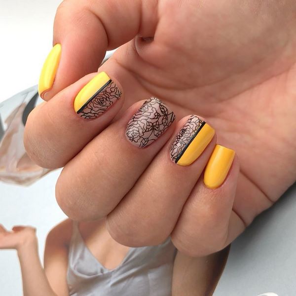 La manucure incroyablement belle et apparemment compliquée sur des ongles moyens a été présentée par des maîtres des ongles dans la technique de création d’estampage, qui implique l’utilisation d’un timbre et qui nécessite les compétences nécessaires pour transférer les dessins avec précision sur l’ongle. Après avoir adapté un peu, vous pouvez obtenir une conception très cool des ongles moyens avec de superbes impressions.