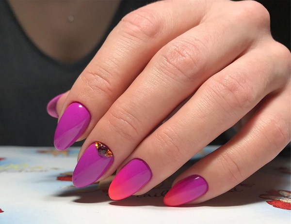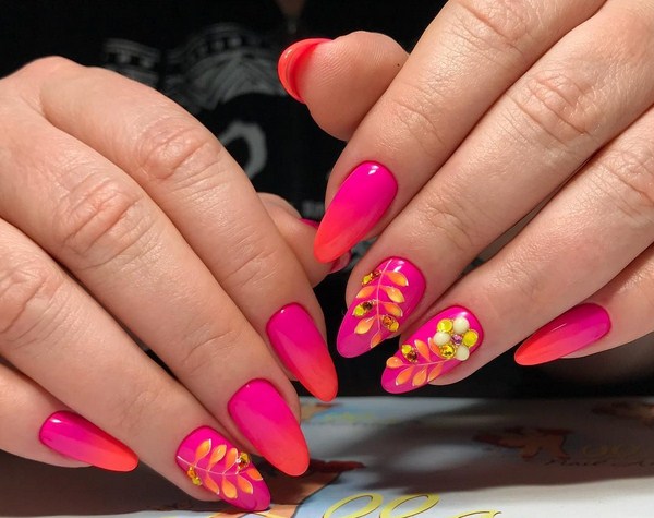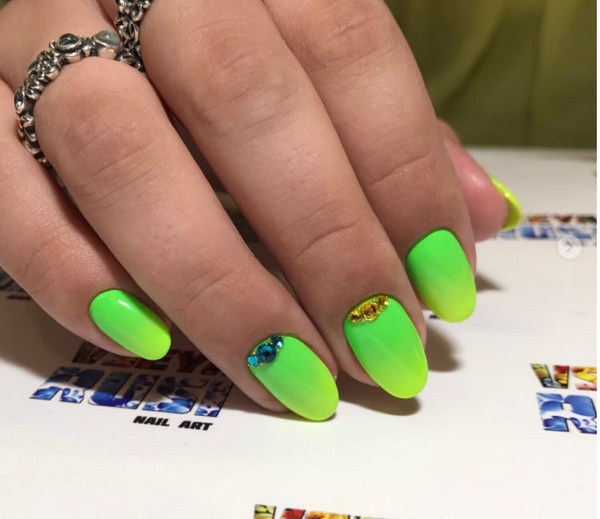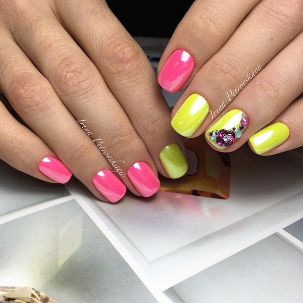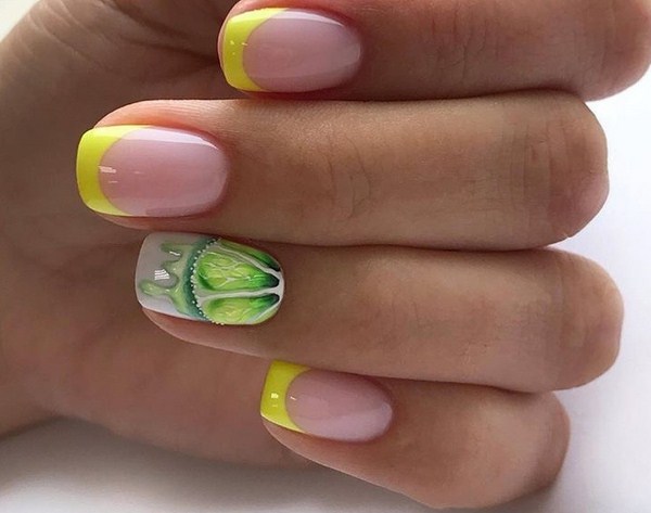 En outre, la couleur vive des ongles ajoutera de la force, vous remontera le moral et vous procurera des émotions positives à vous-même et à tout le monde, ce qui constituera sans aucun doute un dessin lumineux et à la mode des ongles pour le printemps et l'été.
