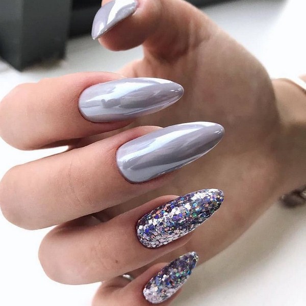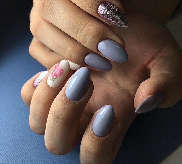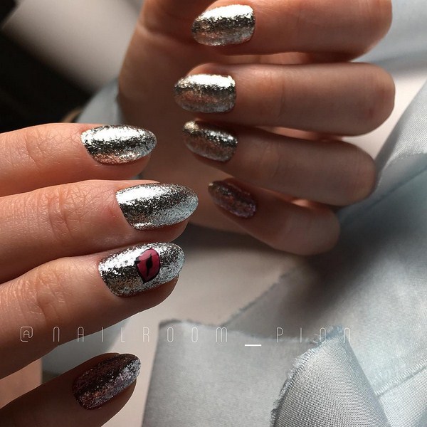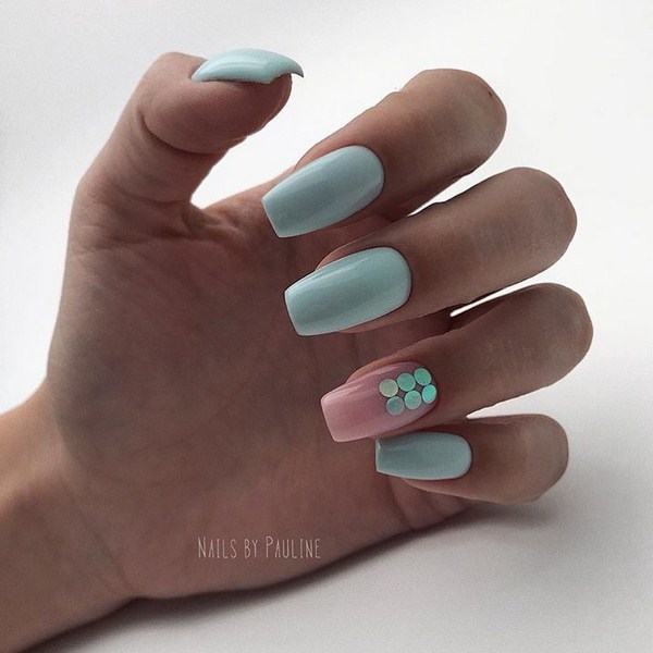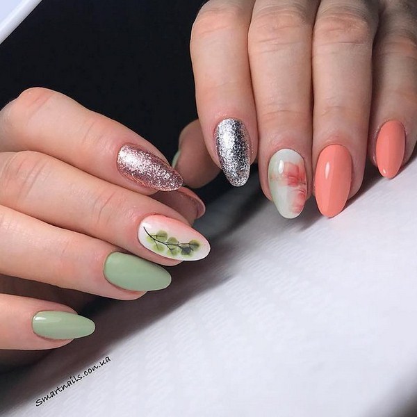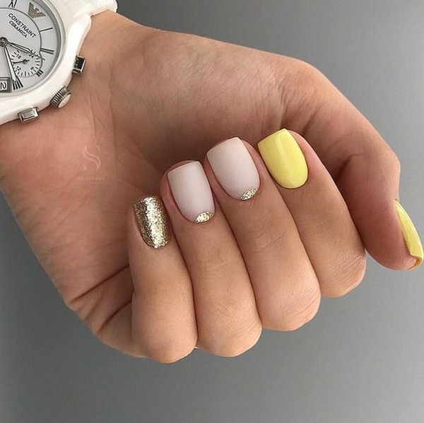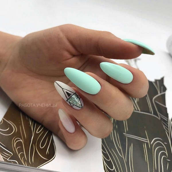 Pour donner aux ongles élégance, intrigue et charme à la puissance des étincelles, qui peuvent être dans différentes représentations, telles que des paillettes ou des feuilles. Si vous souhaitez obtenir une belle manucure printemps-été avec un décor brillant, il est important de mettre en valeur un ou deux doigts, en les recouvrant d'un décor totalement brillant ou en décorant partiellement tous les doigts. La conception printemps-été avec des dessins dans lesquels vous pouvez utiliser en toute sécurité des paillettes, du papier d'aluminium, des flocons de Yuki et tout autre décor pour les ongles deviendra à la mode.