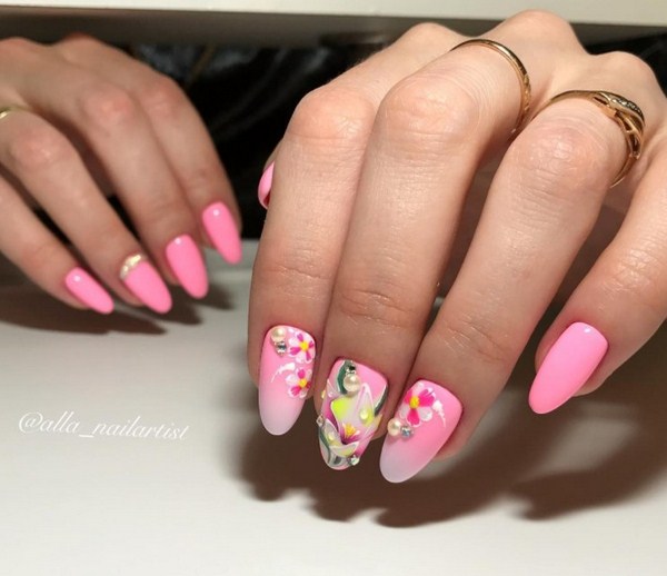 Les ongles à la mode printemps-été appartiennent aux conceptions saisonnières de manucure, dans lesquelles prédominent les motifs typiques pour la période printemps-été - une palette pastel de vernis gel, des impressions florales, de délicates transitions de dégradés, des nuances de néon, du brillant art.