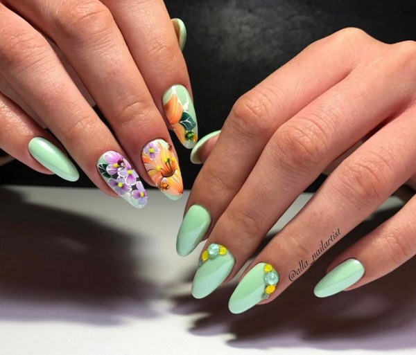 Les dessins les plus colorés pour la période printemps-été seront des dessins qui illustrent le véritable art des ongles sous la forme d'un design à la mode pour l'art des ongles 2025-2026. Réaliser des dessins complexes et colorés pour une magnifique manucure printemps-été peut être réalisé exclusivement par des professionnels, qui peuvent décorer les ongles avec des dessins de fleurs, d'animaux, de feuillages, de silhouettes de personnes, ce qui vous permettra, en tandem, de réaliser une incroyable beauté de la conception des ongles.