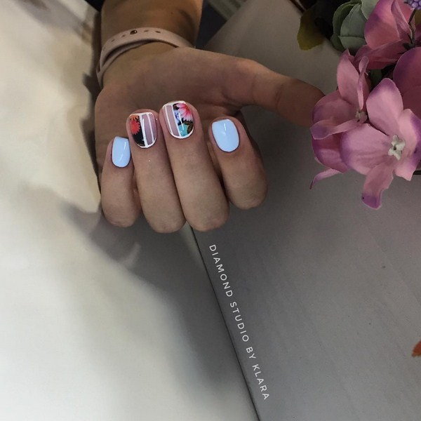 La conception des ongles est très sensible à la conception des ongles à la mode. Dans le même temps, la douceur de la manucure printemps-été n’exclut pas son effet et sa luminosité, car les dessins ou décors sur un revêtement délicat peuvent être colorés, ce qui a également l’air à la mode. Pour une douce manucure printemps-été, vous pouvez choisir un motif en marbre, des fleurs aérées, des dessins abstraits et de ravissants dessins d’artiste avec oiseaux, abstraction et minimalisme.