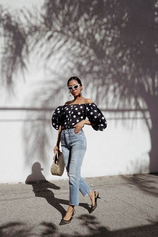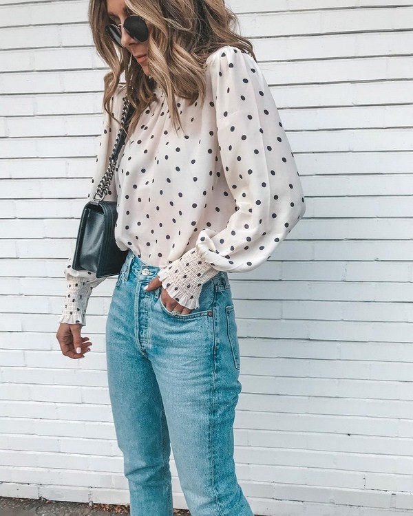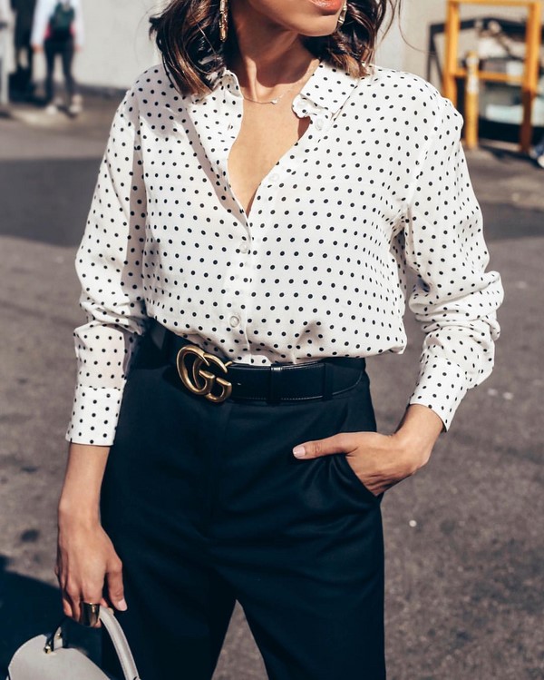 En ce qui concerne les chemisiers, l’impression de pois ajoutera de l’intrigue et du charme aux arcs présentant un sommet similaire. Image professionnelle pour le shopping et la promenade, une tenue romantique deviendra incroyablement belle avec un imprimé à pois à la mode sur des chemisiers pour femmes de tous âges et de tout teint. Les chemisiers à pois Trend sont très polyvalents et vous aideront dans toutes les situations, en particulier lorsqu'il n'y a rien à porter.