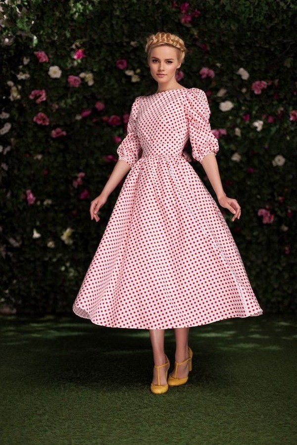 En outre, une impression de pois à la mode conviendra à tout âge, aussi bien pour les jeunes filles que pour les femmes plus âgées. L'efficacité des images avec des vêtements à pois apportera des couleurs vives - nuances de rouge, citron, rose, corail, vert.