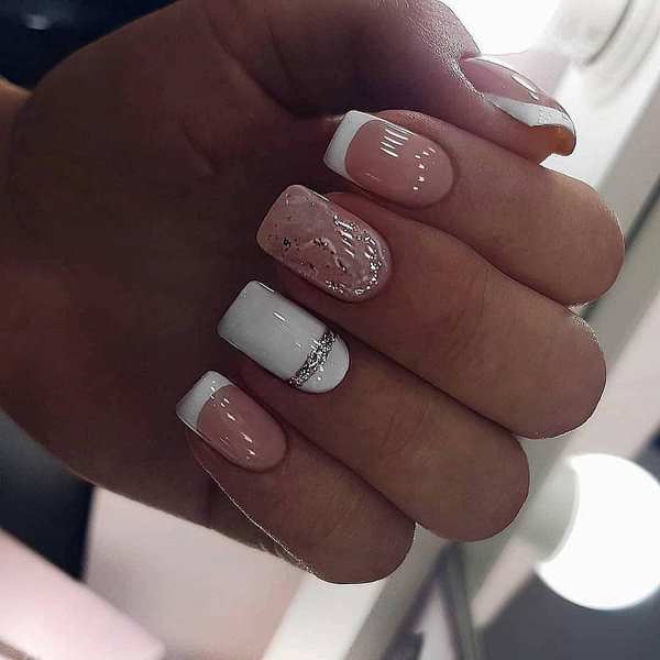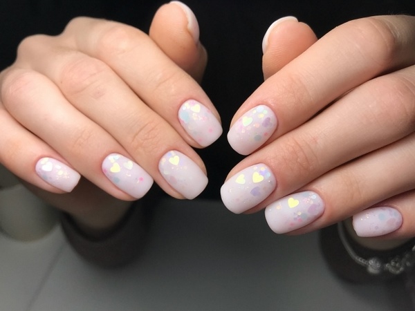 Manucure légère avec feuille sous forme de rayures, de gravures et de la nouvelle technique de «déchirure de licorne» sera charmée. Largement utilisé par les maîtres de frottement pour créer des ongles nacrés. Un merveilleux ajout sera un décor brillant à la mode sous forme de paillettes, de kamifubuki et de paillettes pour créer un ongle léger, élégant et à la mode.