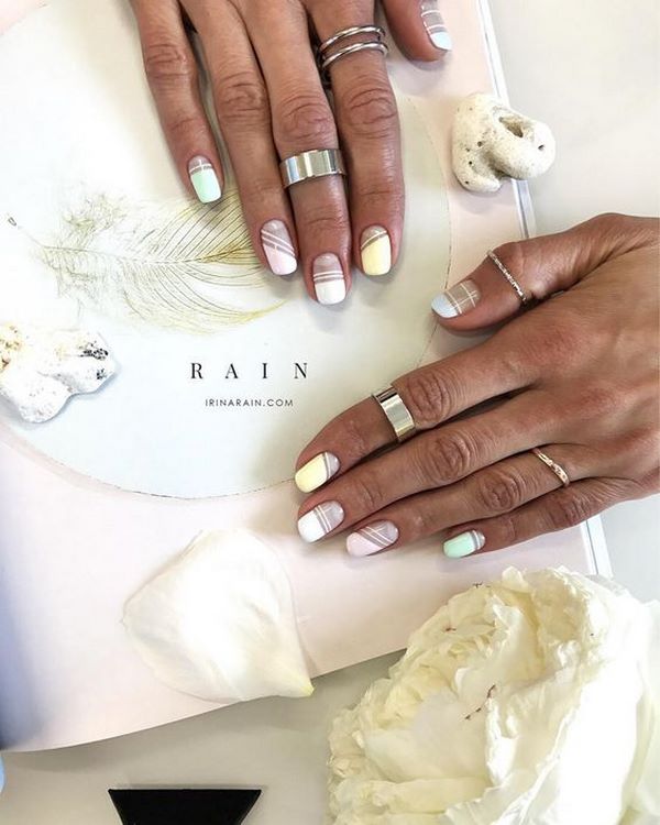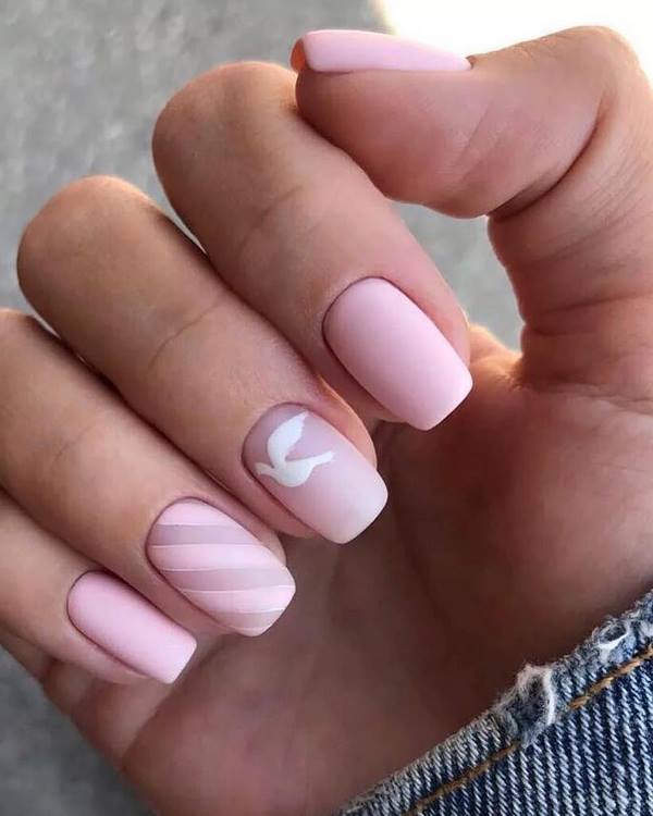 La tendance est simple et mignonne avec des cœurs, des brindilles, des papillons et des fleurs qui ont l’air merveilleux avec une manucure légère. Pour la conception de manucure légère au bureau et aux entreprises, les lignes et les impressions graphiques seront les meilleures. Pour la soirée, privilégiez les ongles à la mode avec des dessins en forme de dentelle et de boucles.