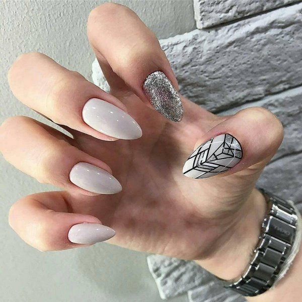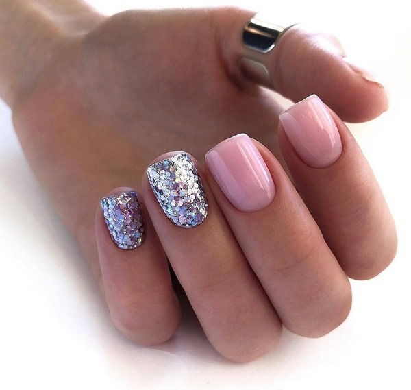 Les ongles chics ne seront pas tels sans étincelles, qui deviendront la tendance principale de tous les modèles d’ongles à la mode, y compris les manucures légères. Les paillettes et les paillettes seront parfaites, en complément des images sur les ongles et en tant que décor indépendant pour les ongles clairs.