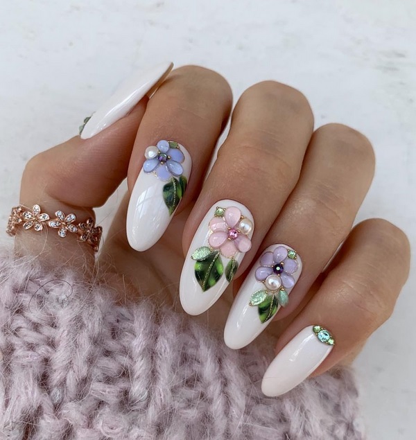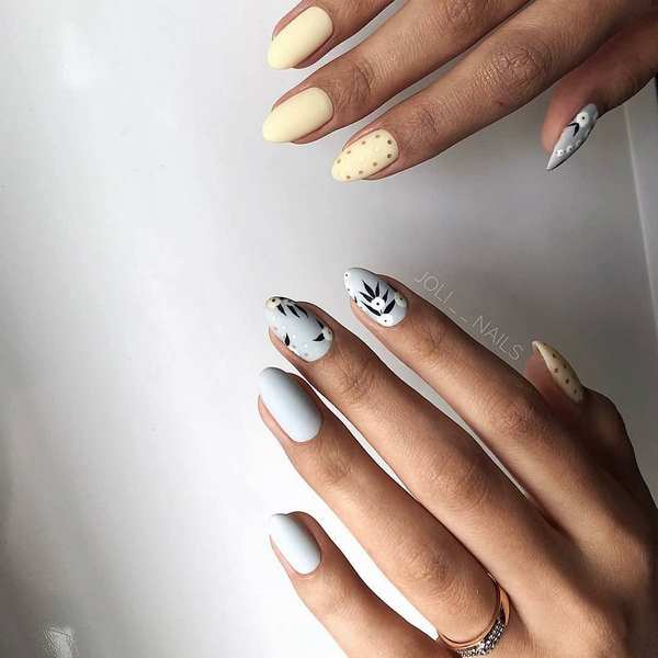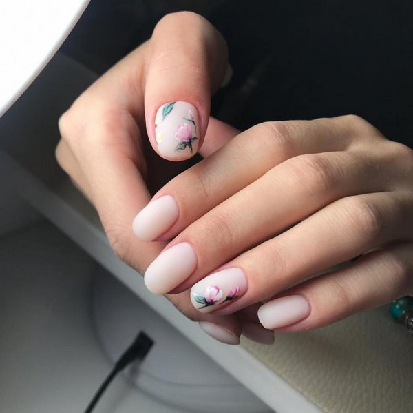 Rendre une manucure légère intéressante et expressive permettra d’utiliser des motifs floraux qui, dans la nouvelle saison, devraient être concis et non collants.Décorez quelques doigts avec les bords de brindilles florales ou de mini-motifs de fleurs - cela suffira pour obtenir un nail art léger et tendance avec des fleurs.
