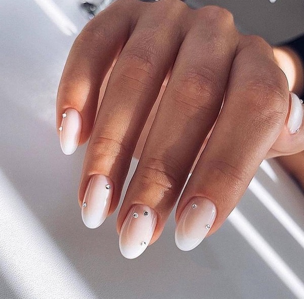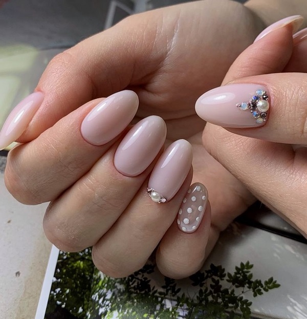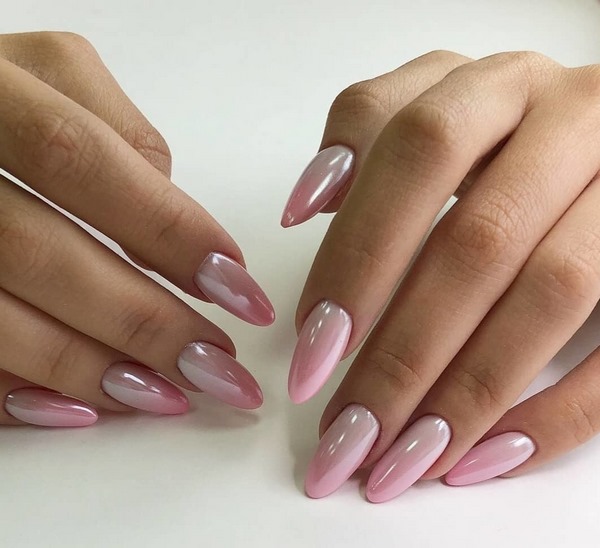 Une image attrayante de manucure qui ne peut que plaire - c’est le dessin d’ongles frotté de perles, réalisé sur un léger enduit. Les ongles de perles à la mode peuvent être confectionnés avec une manucure légère dégradée, comme toute autre, donnant un éclat délicieux et délicat à une manucure légère.