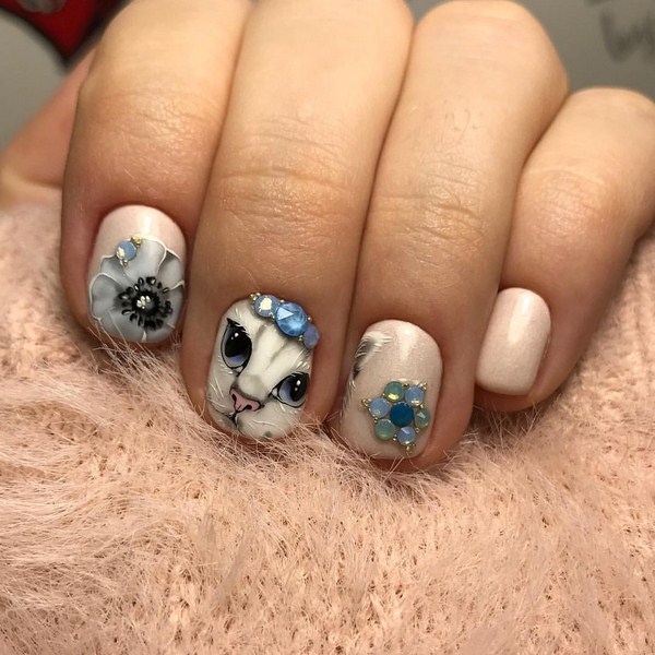 Outre les nuances qui déterminent la manucure d'hiver à la mode, il existe des dessins - des images traditionnelles avec des flocons de neige et des paysages d'hiver, des animaux et d'autres attributs hivernaux peuvent apparaître sous forme d'image sur vos ongles cet hiver.