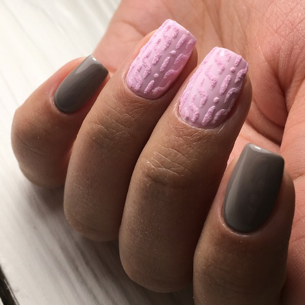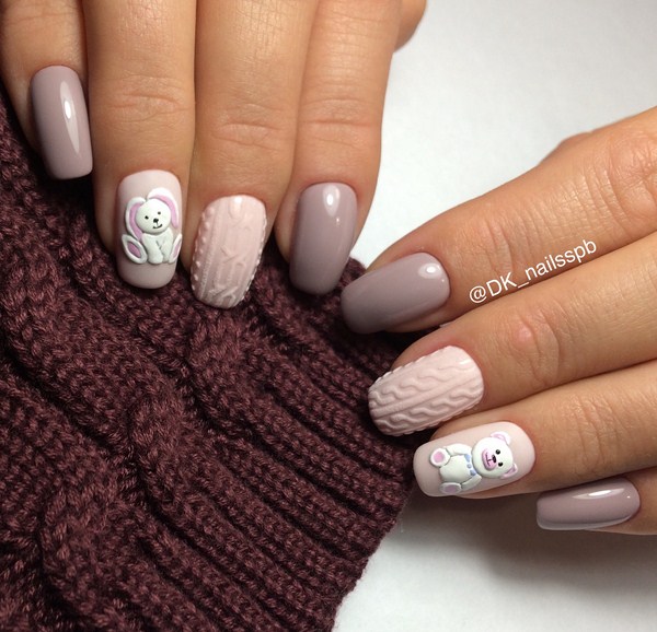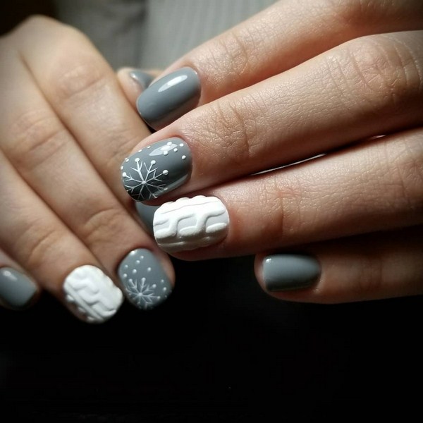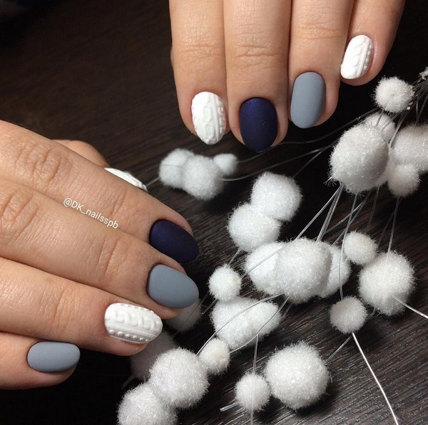 Le désir de se plonger dans le confort se reflète dans la conception des ongles en hiver, lorsque les maîtres exécutent un "pull" d'hiver sur les doigts des dames modernes. Le «pull» au design à la mode imite magnifiquement les motifs de tricot, complétant parfaitement les tenues d’hiver.