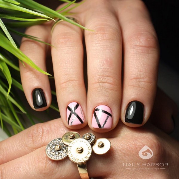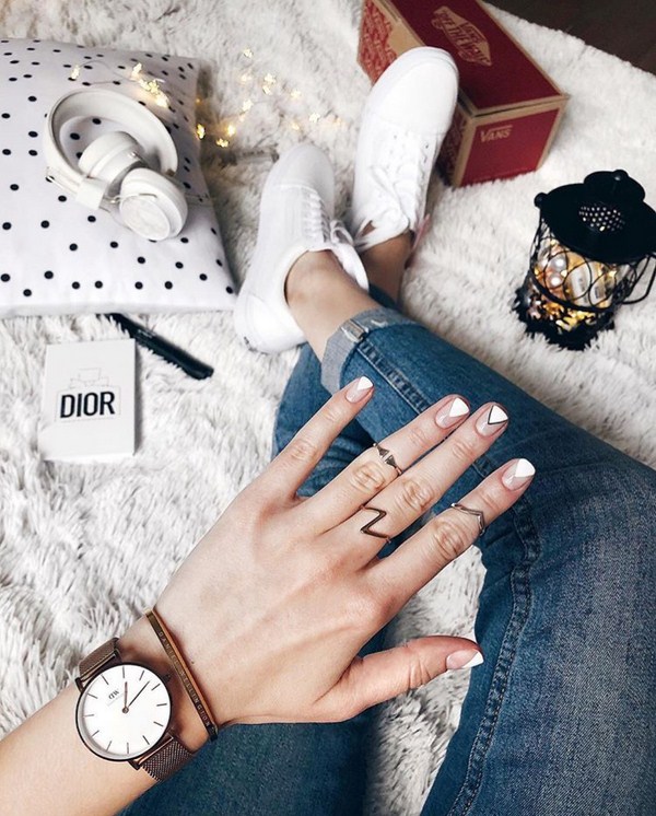 Manucure d'hiver semble charmant avec minimalisme dans la décision de conception. Les dessins sur écran dans le style "espace négatif" raviront également les belles beautés par leur sophistication.