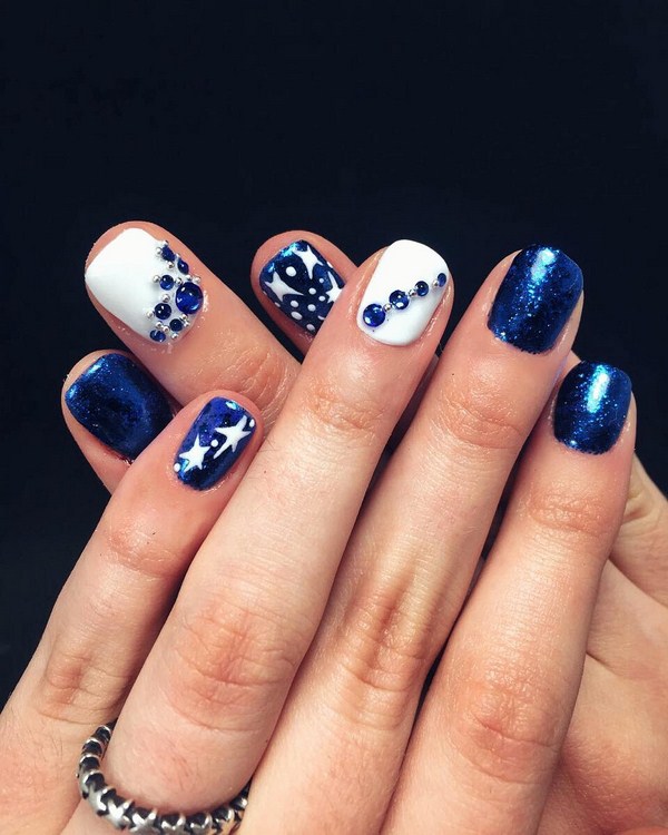 Cela peut être le Nouvel An, une fête d'entreprise, un anniversaire, un mariage, un Noël, pour lesquels les images avec manucure d'hiver avec strass seront très populaires.