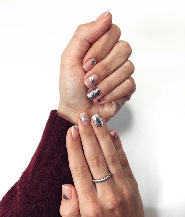 L'hiver nous offre une abondance de paillettes d'argent et d'or à appliquer dans le design d'hiver à la mode des ongles 2025-2026.