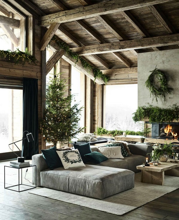 Très populaire et pertinent, le décor du Nouvel An 2026 se présente sous la forme de diverses branches épaisses et minces, accrochées à un magnifique décor du Nouvel An composé de cônes et de textiles, d'arcs et de branches de sapin.
